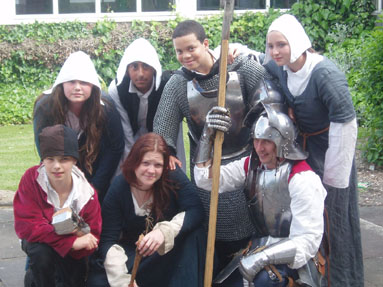 Medieval Clothes – 17 students are dressed in medieval costume, including lords, ladies and a priest. All other students have a household tabard, coif and belt to wear. So everybody gets dressed up in some way! Even teachers may dress up if they wish. The clothes are explained to the students who then have to answer questions about what they have just heard.